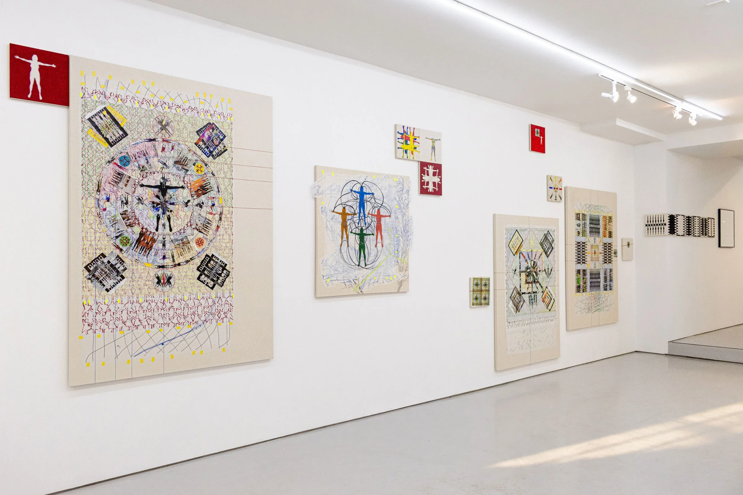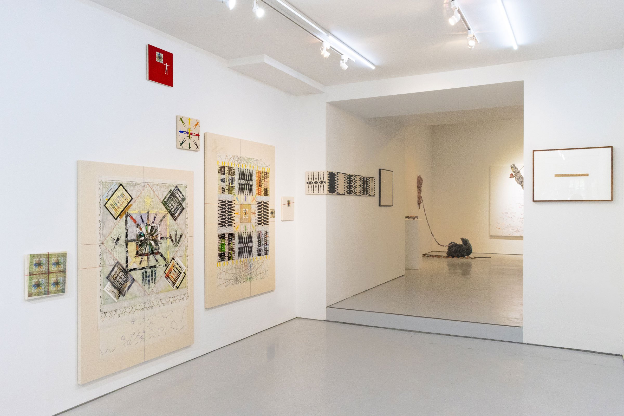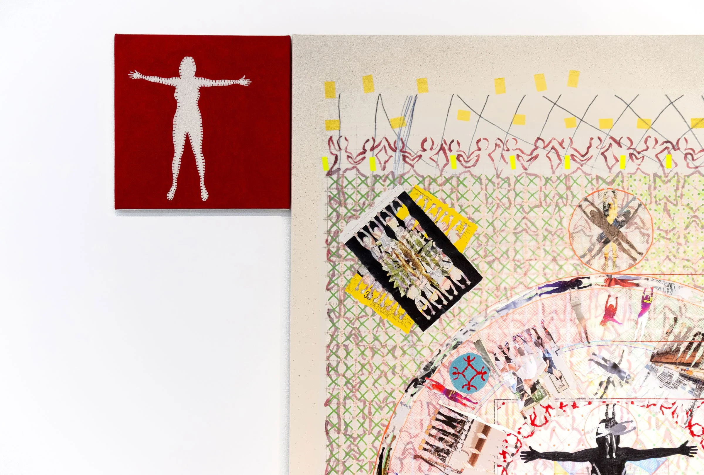 Three series of my recent paintings, mixed media on canvas, and drawings are featured in this exhibition. A painting of a red stitched figure initiates this constellation, where twenty-one works of various sizes and materials are installed on the walls with an underlying gridded structure. Each artwork's relationship to other paintings and the architectural space is carefully calculated. These recent works display Yang's exploration to intermingle the concepts of printmaking with painting language, explicitly the ideas of layering, repetition, and multiplicity, and present her new direction in the philosophy of measurement.